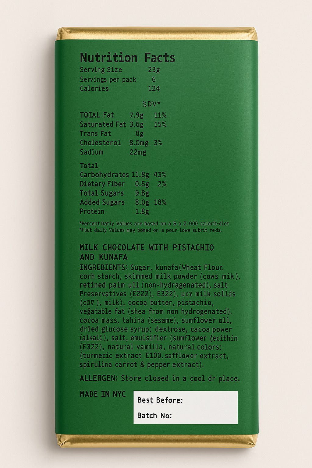 Inspired by the world-famous viral sensation from Dubai, our Dubai Knafeh Pistachio Chocolate is an indulgent homage to tradition, modern luxury, and irresistible texture.
